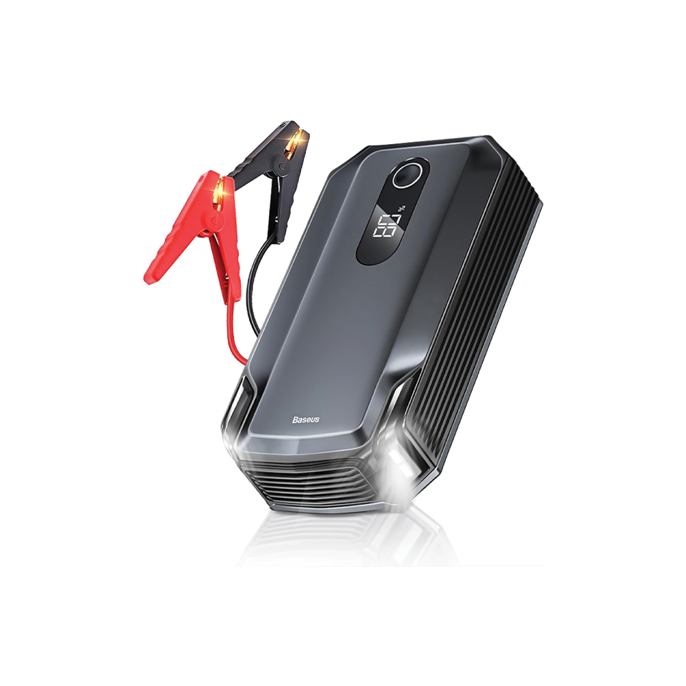 A powerful 20,000mAh jump starter with 2000A peak current, capable of starting up to 8.0L gas and 4.0L diesel engines. Features fast charging USB-C & USB-A ports (42W), LED flashlight with SOS, digital display, and 9 safety protections. Compact, flight-safe, and reliable even in extreme temperatures.