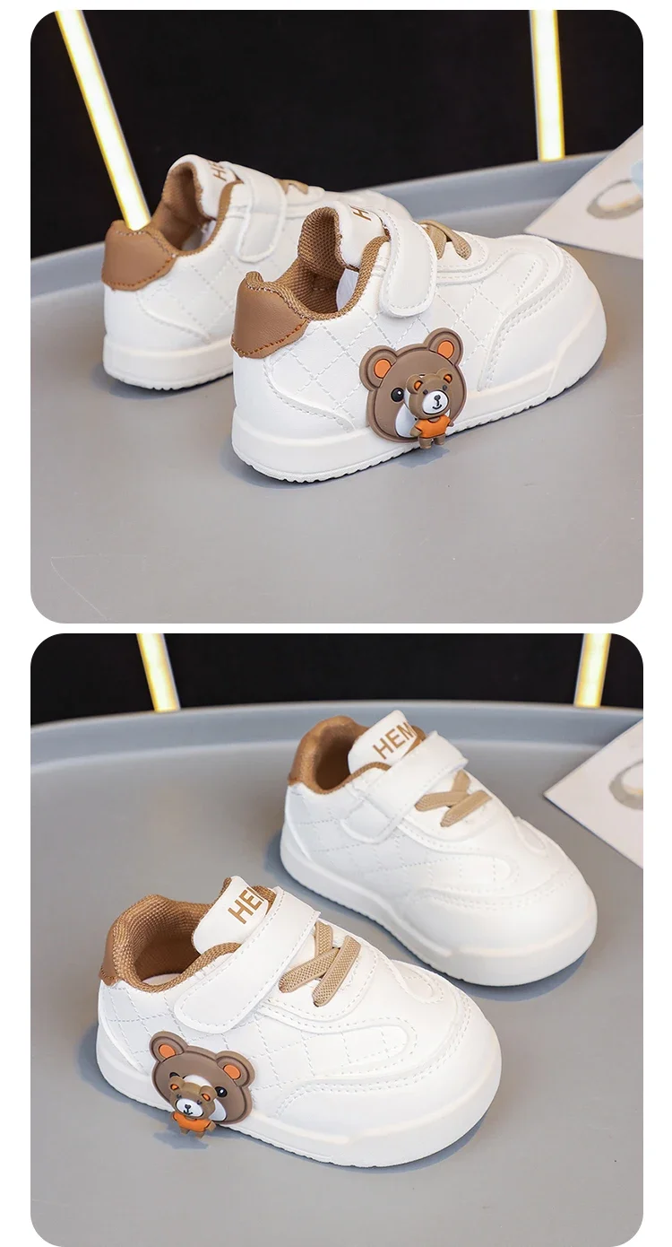 White Sneakers Toddler Baby First Walker Cute Cartoon Bear Children Sport Shoes
