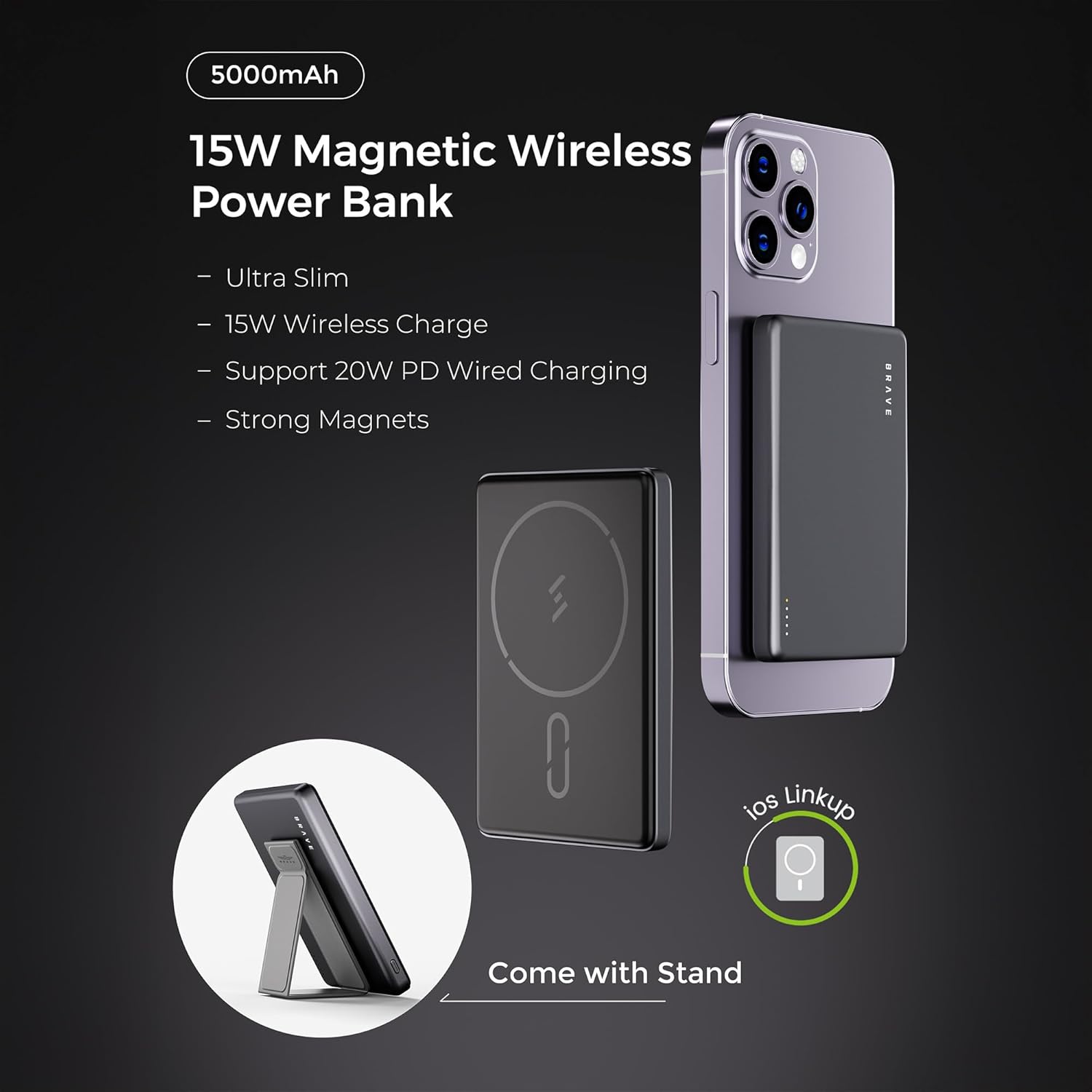 BRAVE Ultra Slim 5000mAh Magnetic Wireless Power Bank 15W