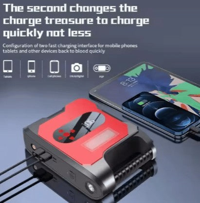 Car Air Pump Power Bank – A compact, 2-in-1 emergency tool that combines a fast air inflator with a portable power bank, keeping you safe and prepared on the road.