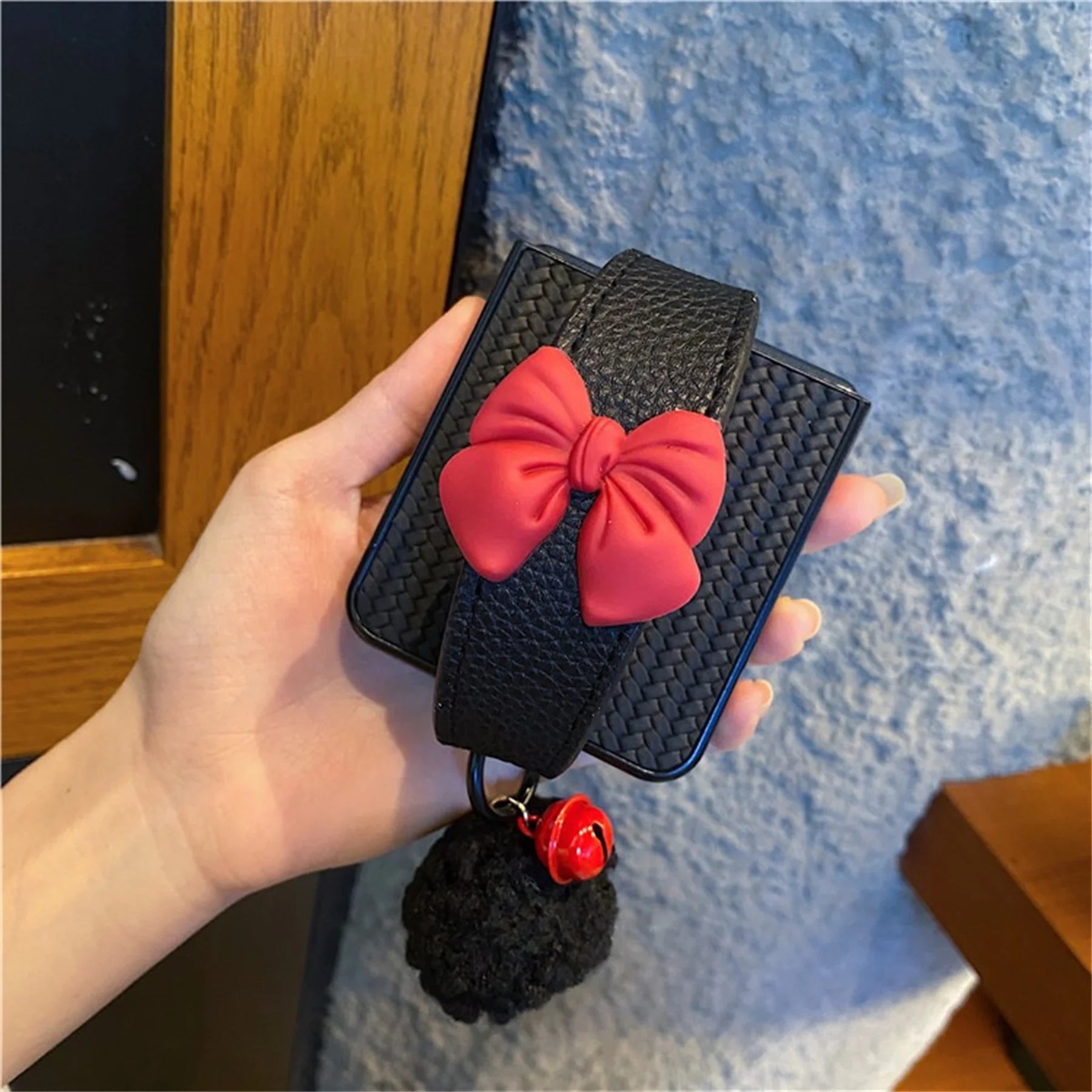 Mat Rhombus Phone Case with Bow Wrist Strap for Samsung Galaxy Z Flip