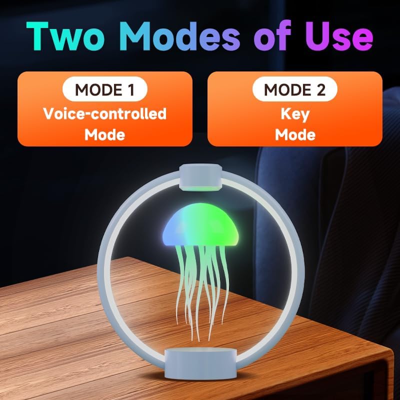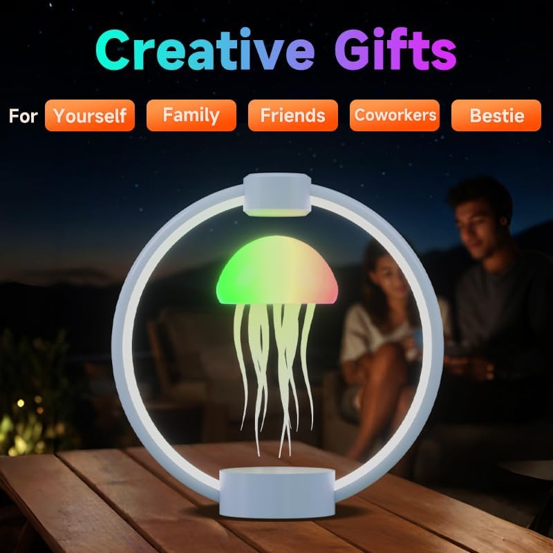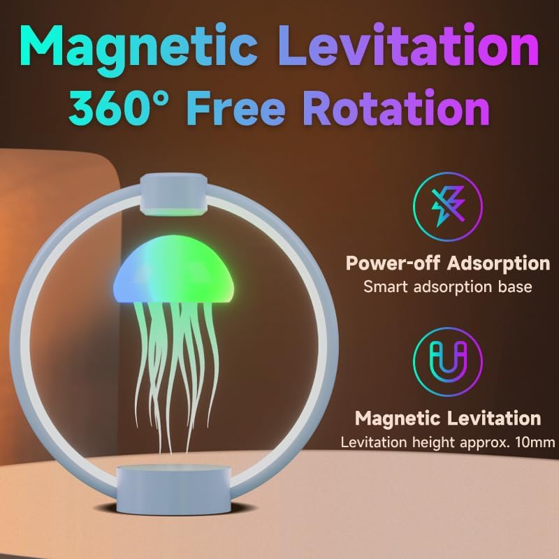 Experience a stunning blend of technology and art with this mesmerizing levitating jellyfish lamp. Using magnetic levitation, the jellyfish floats gracefully in mid-air, rotating 360° for a magical display. Soft, colorful LED lighting enhances the effect, creating a relaxing and futuristic atmosphere perfect for bedrooms, living rooms, or offices. A unique décor piece and conversation starter that brings serenity and wonder to any space.