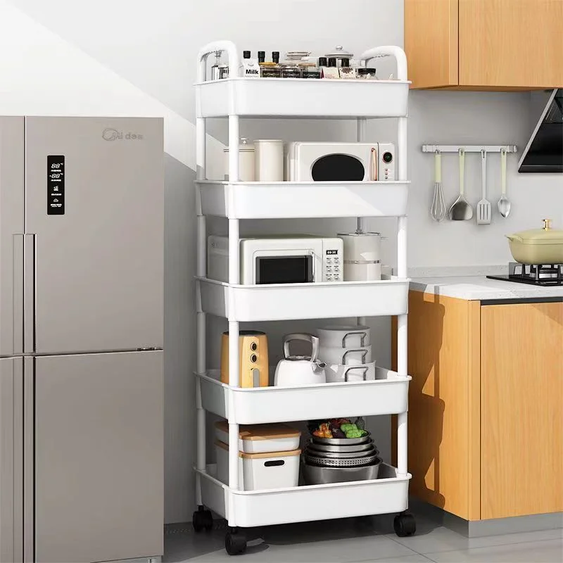 Multi-Layer Trolley Rack Plastic Trolley Kitchen Mobile Storage Rack with Wheels
