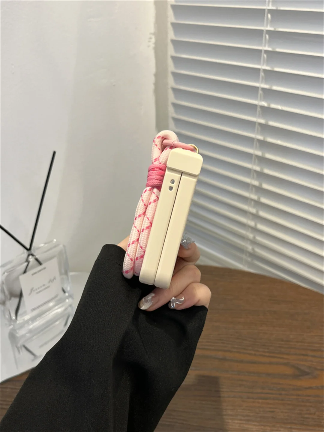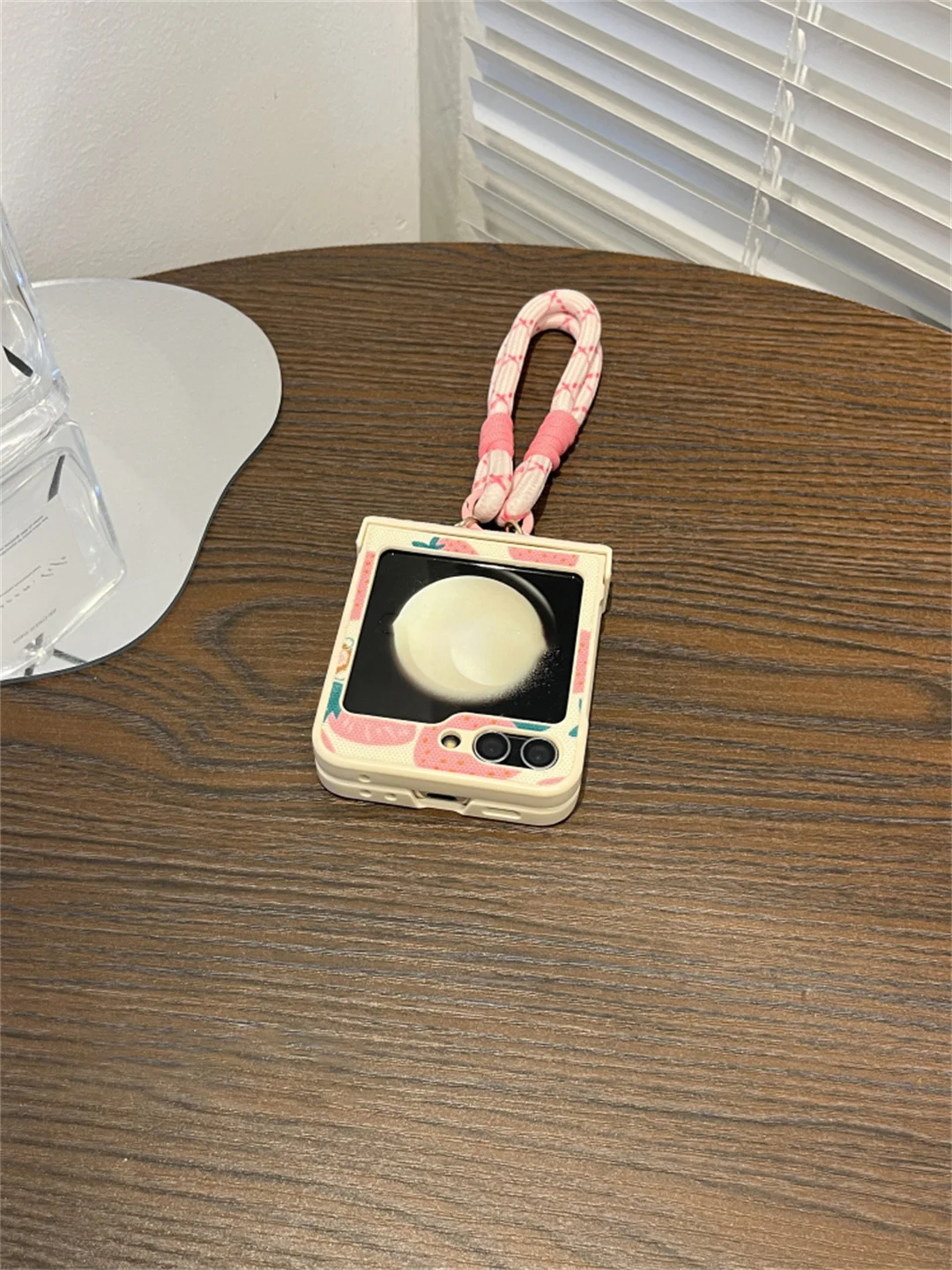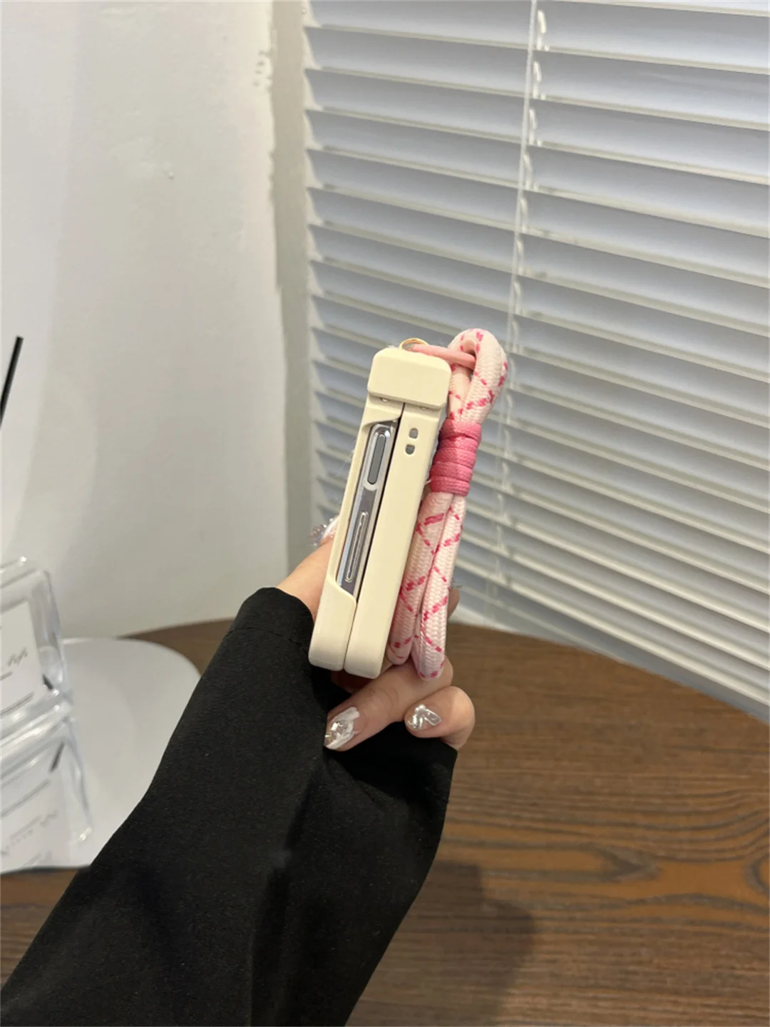 Pink Strawberry Portable Rope Phone Case for Samsung Galaxy Z Flip