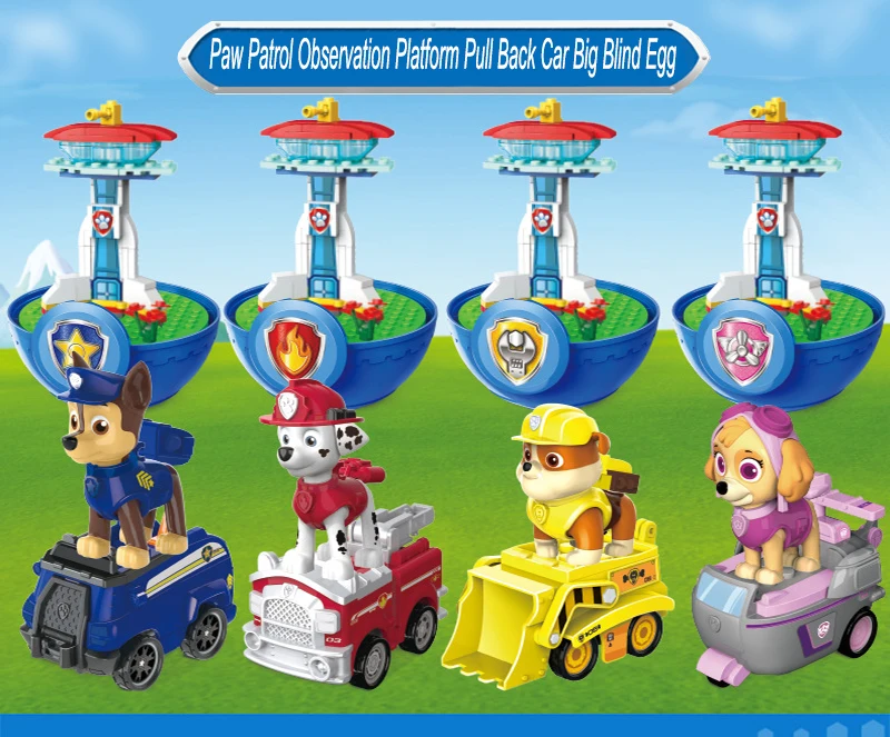 Paw Patrol Big Twisted Egg Watchtower Anime Character Skye Marshall Rubble Chase Pull Back Car Cartoon Model Car Kids Gifts Toys