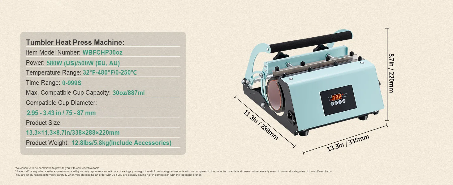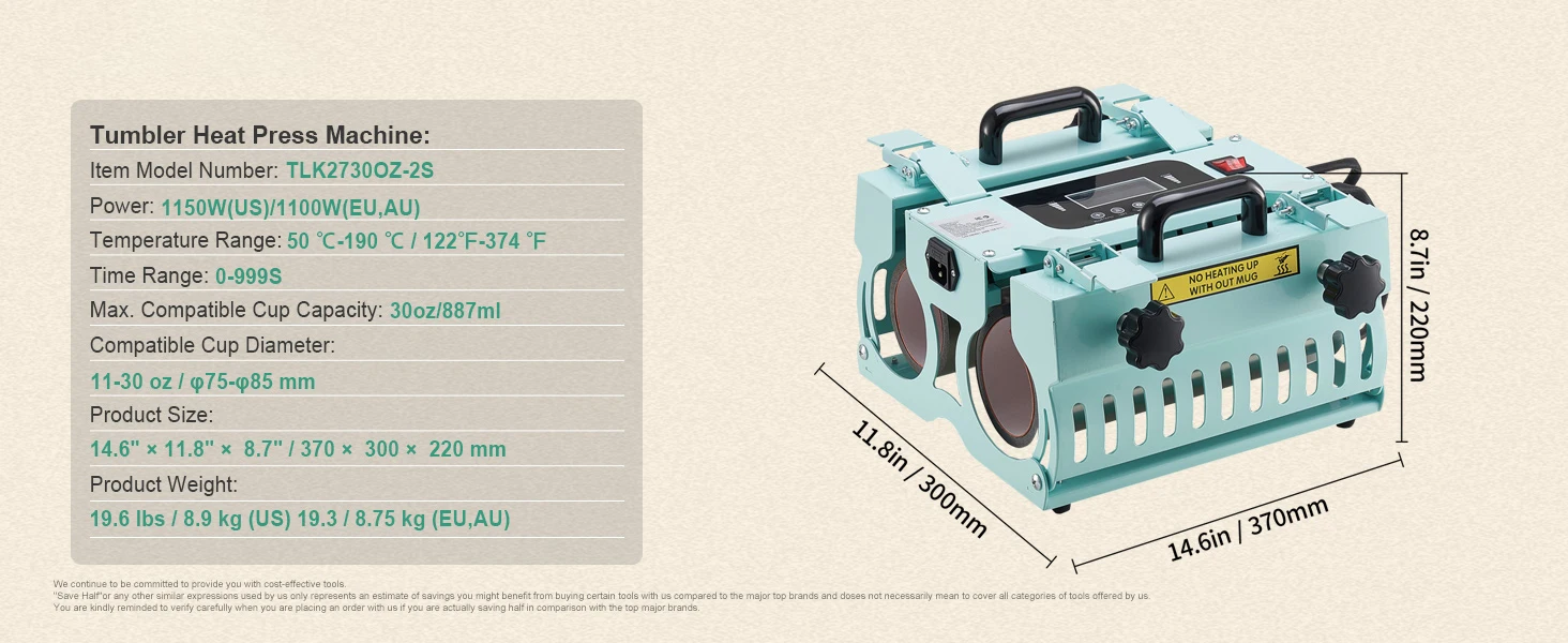 Tumbler Heat Press Machine 2 Station Heaters 11-30oz Mug Press Tumbler Press Sublimation