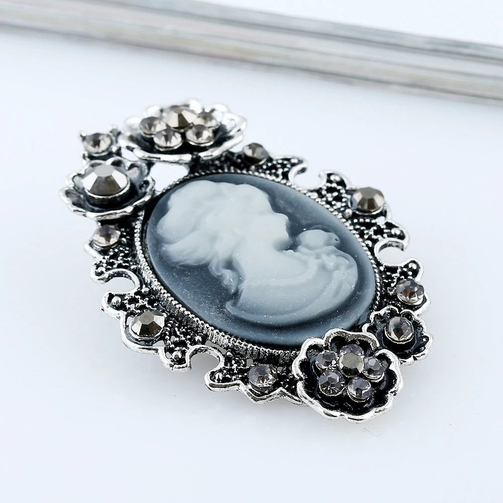 Vintage Crystal Rhinestones Cameo Brooches for Women Queen Head Brooch Pin