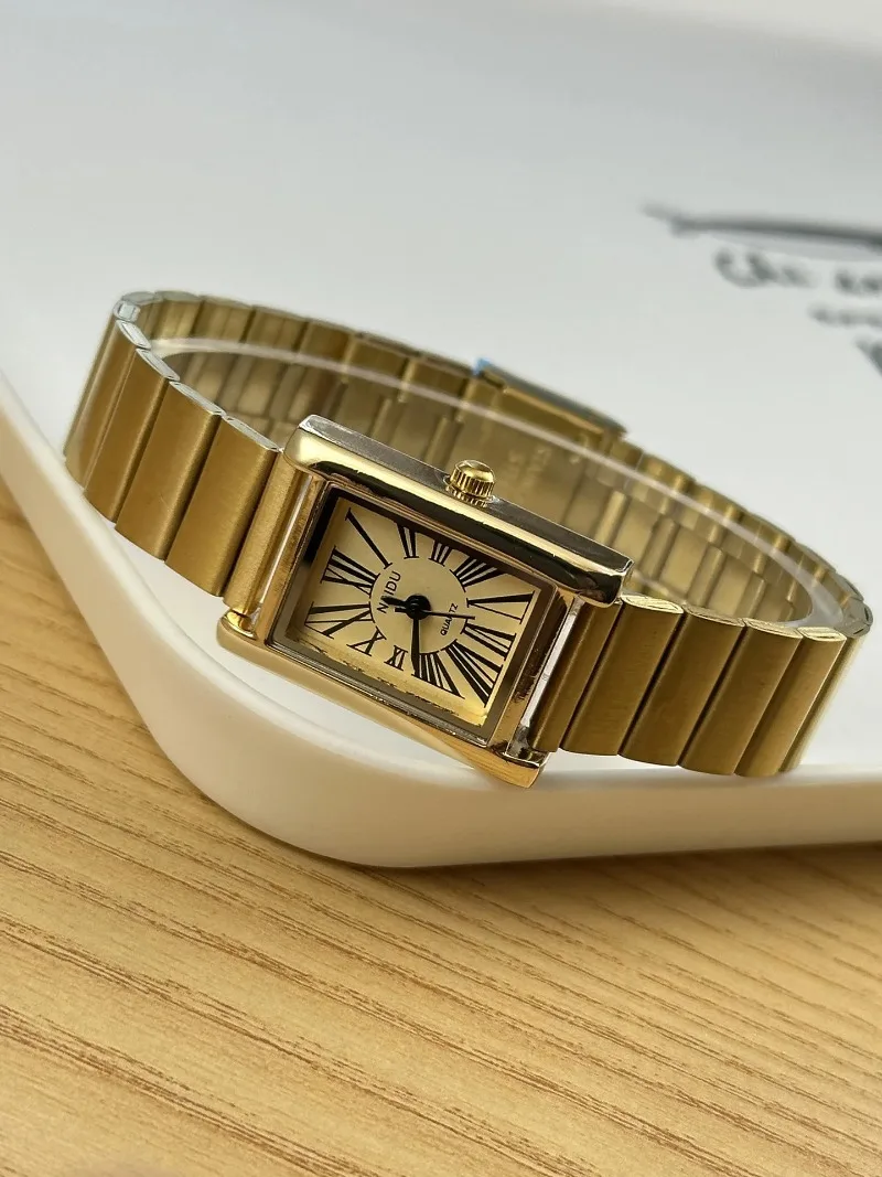 Vintage Small Gold Watch for Women Luxury Rectangular Watch Classic Quartz
