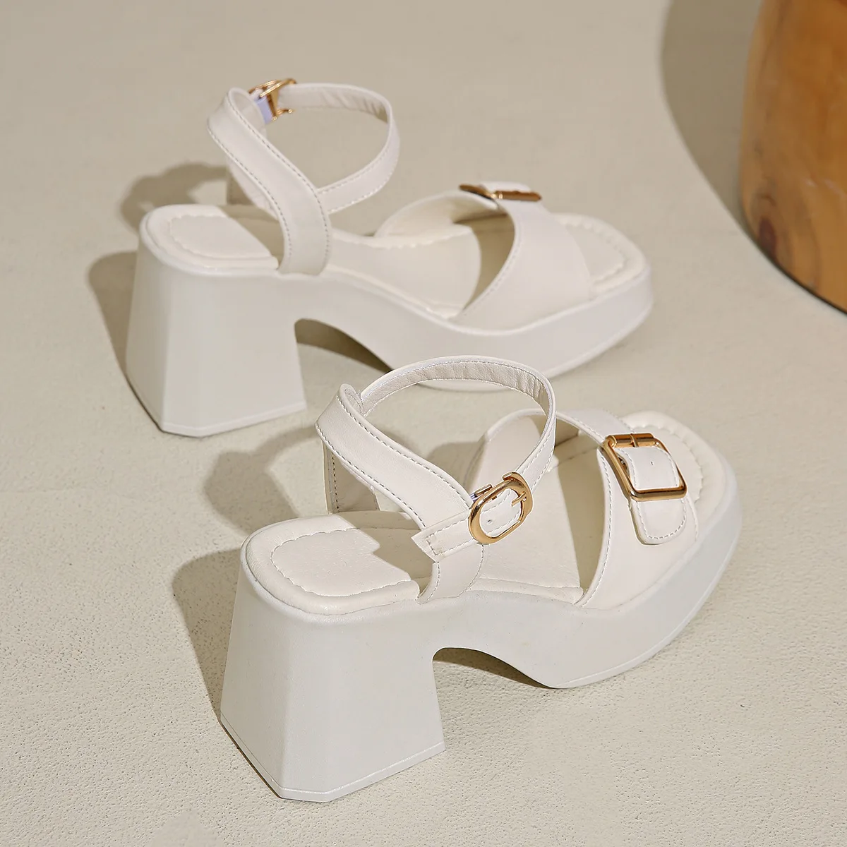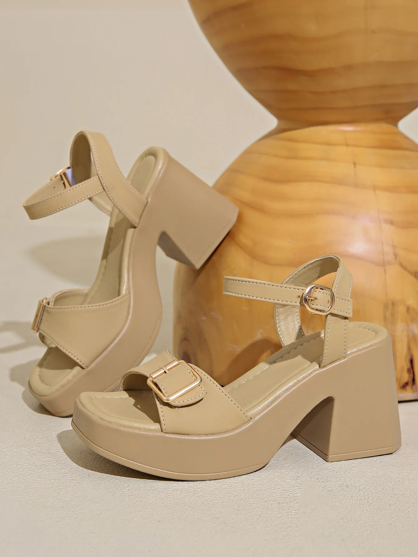 Sole sandals solid color casual shoes one line buckles high heel sandals