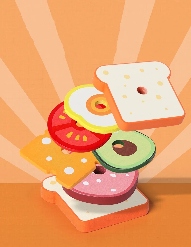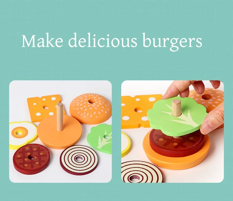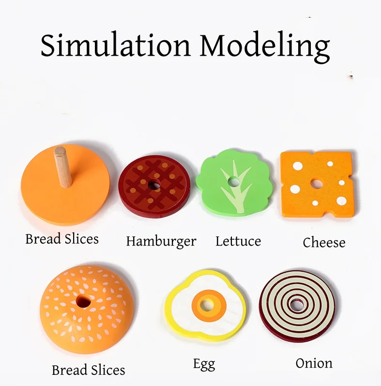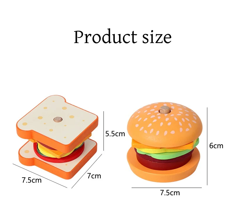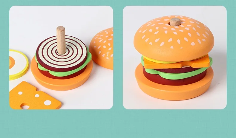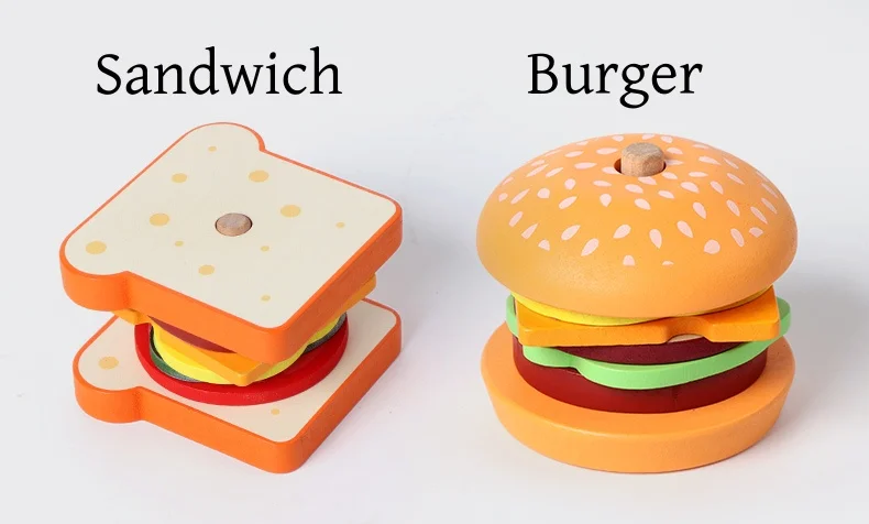 【Durable and Safe Material】This hamburger toy is made of quality wood, ; The vibrant color, safe paint, and the surface without burr ensure the complete safety and enjoyment of your little ones;