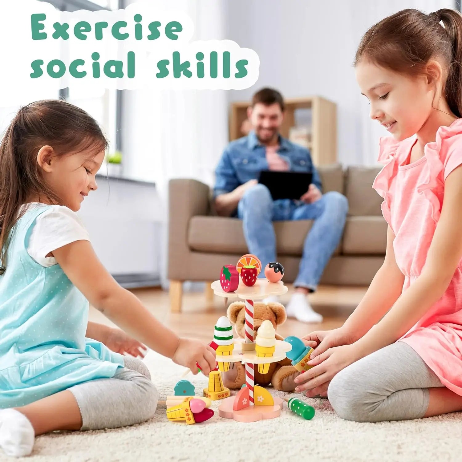 Wooden Ice Cream Counter Playset for Toddler Toys