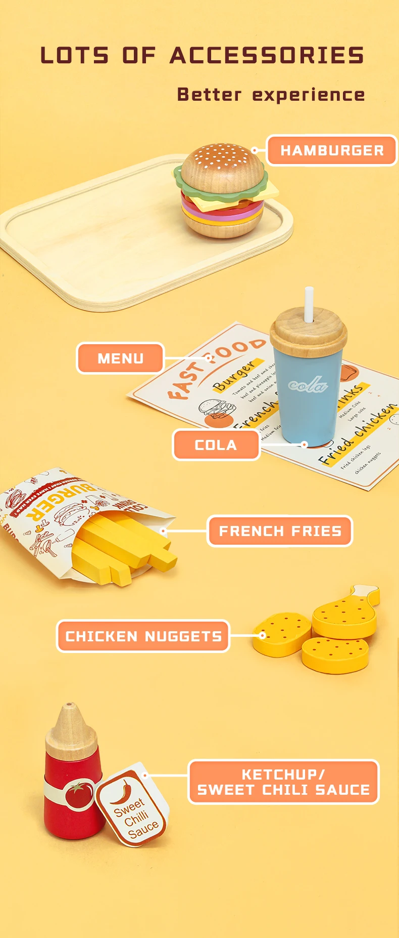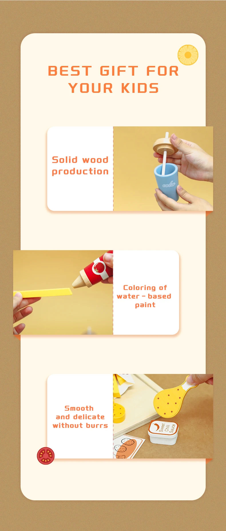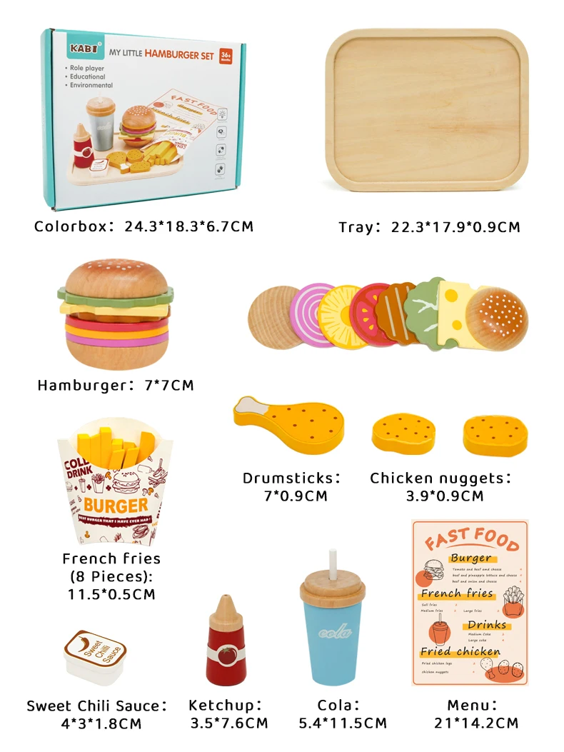 SAFE AND HIGH QUALITY: The Cake Made of non-toxic wood, All accessories are made of environmentally friendly odorless and odorless water paint materials. Beautifully crafted and smooth edges to keep kids safe to play.