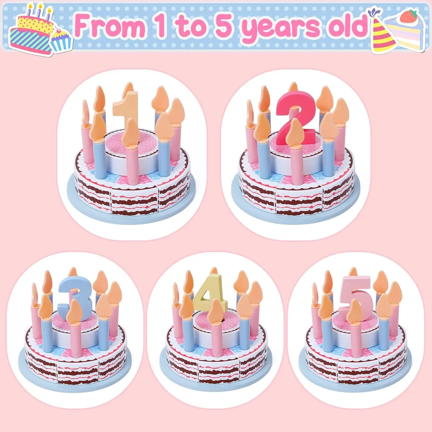 Wooden birthday cake:when the birthday girl decorates the birthday cake himself, he can go through the process of age selection from candle lighting to cake cutting, and finally share the cake slices with family and friends! This not only trains the dexterity of the little ones, but also promotes creativity, social skills, fine motor skills and hand-eye coordination